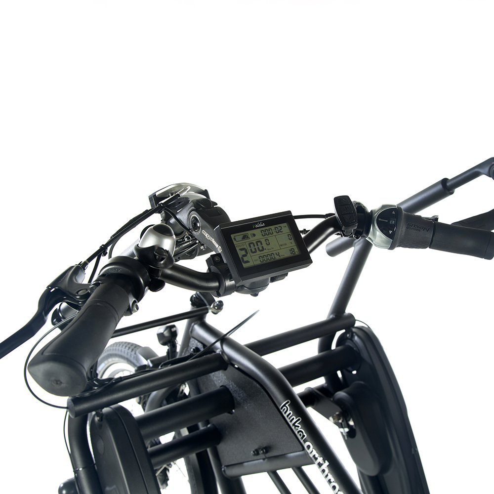 De Huka Orthros wordt bij de E-bike Specialist geleverd inclusief elektrisch systeem. Het Veldia elektrisch systeem is uitgerust met een vrijloopmotor waardoor u zelfs zonder (of met lege accu) zonder enige weerstand kunt doorfietsen. Het luxe display is uitgerust met een fietscomputer en 5 standen fietsondersteuning. De bediening bevind zich aan het stuur en kan naar wens links of rechts geplaatst worden. Met de accu die standaard wordt geleverd bij de Huka Orthros heeft u een actieradius +/- 100 kilometer.