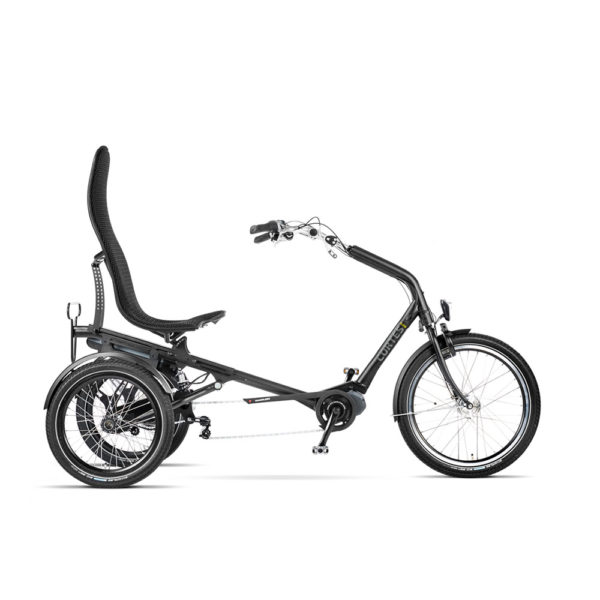 De gloednieuwe Huka Cortes driewielfiets is duidelijk verschillend van andere driewielers. Door zijn eigentijdse uitstraling is het een driewieler waarop je gezien mag worden. De Huka Cortes wordt bij de E-bike Specialist geleverd met een Bafang middenmotor.