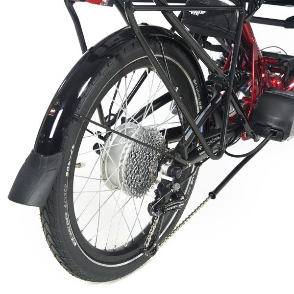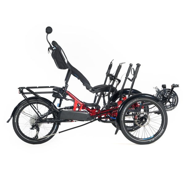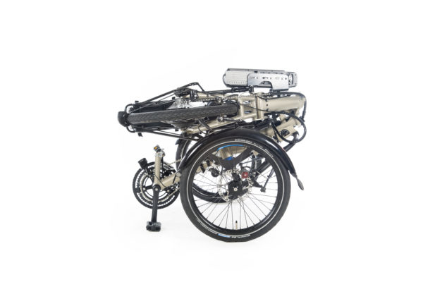 Naast het unieke ophangingssysteem is er nog een bijzonder punt waarop deze fiets zich onderscheid van alle andere driewielfietsen. Deze fiets is met een paar eenvoudige stappen op te vouwen. Deze fiets kan meegenomen worden in bijna elke hatchback, SUV en MPV auto. Met de Scorpion Plus 20 heeft u geen extra fietsdrager of aanhanger meer nodig achter uw auto. Dus ideaal als u een camper of caravan heeft!